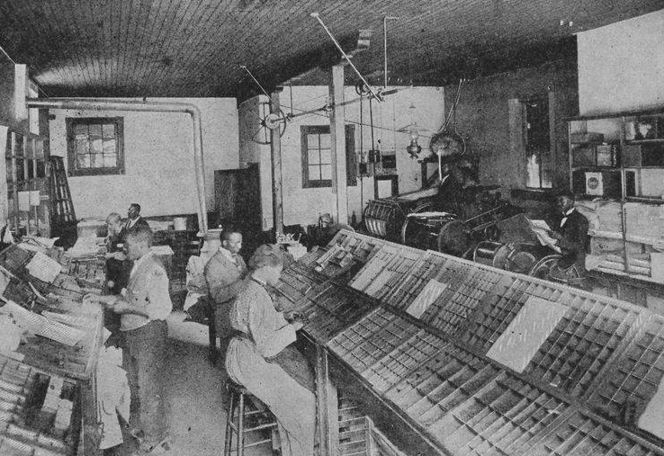 Interior view of Printing Department, Eastern Tennessee Industrial School, 1903. Courtesy of the New York Public Library.
